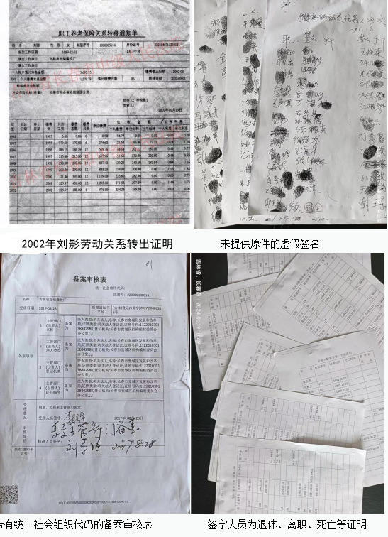 签名真实性存疑: 备案登记档案材料显示,用于证明法定代表人变更的154名签名者名单中,包含大量退休人员(113名)、离职人员(31名)及2名已死亡人员,其中刘影在2002年9月1日社保关系已经转出橡胶厂,并且材料上并未盖有“此复印件与原件一致”的签字或印章。在职橡胶厂职工声称无一人参与此次“选举”,同时表示曾经通过各种渠道索要原件,均未提供。该名单若属实,则严重违反《中华人民共和国城镇集体所有制企业条例》关于橡胶厂职工(代表)大会行使职权的规定,也明显不符合《非公司企业法人备案登记提交材料规范》(2014年版)对材料真实性的要求。