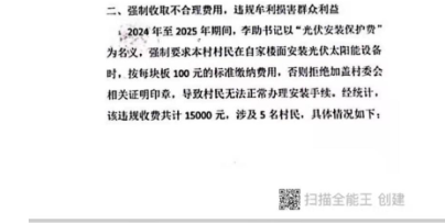 2024年至2025年期间,李助书记借村民在自家楼面安装光伏太阳能设备之机,故意刁难村民,索取“光伏安装保护费”15000元,其中,吴伟才5000元、吴华培3000元、邓小胜3000元、邓林学1000元、邓维九3000元。
